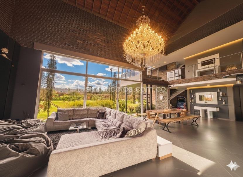 Cuenta con 600 m² construidos sobre un lote de 3.275 m², diseño moderno, domótica, amplios espacios interiores y zonas sociales tipo resort: jacuzzi, turco, BBQ, billar, fogata y áreas de descanso al aire libre.